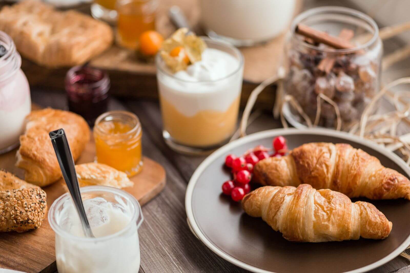 Vi attende una colazione genuina a buffet con brioche, krapfen e torte fatte in casa, pane fresco, salumi e formaggi locali, yogurt del caseificio di Moena, frutta e verdura di stagione, miele di produzione propria e marmellate fatte in casa. Non mancano proposte senza glutine e senza lattosio e, per chi lo desidera, un calice di spumante per un tocco di festa. Dal menu à la carte potrete ordinare bevande calde, spremute fresche e piatti preparati con uova locali.